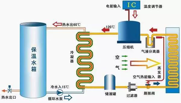 空气能热泵是目前应用最广泛的系统,它是指通过空气换热器与室外空气换热制取冷(热)量的热泵系统。与其他热泵系统相比,空气能热泵的热源获取便利、设备的投资低是其主要的优点;但也存在冬季温度低、需要辅助热源、无储存效应、噪声污染大等缺点。