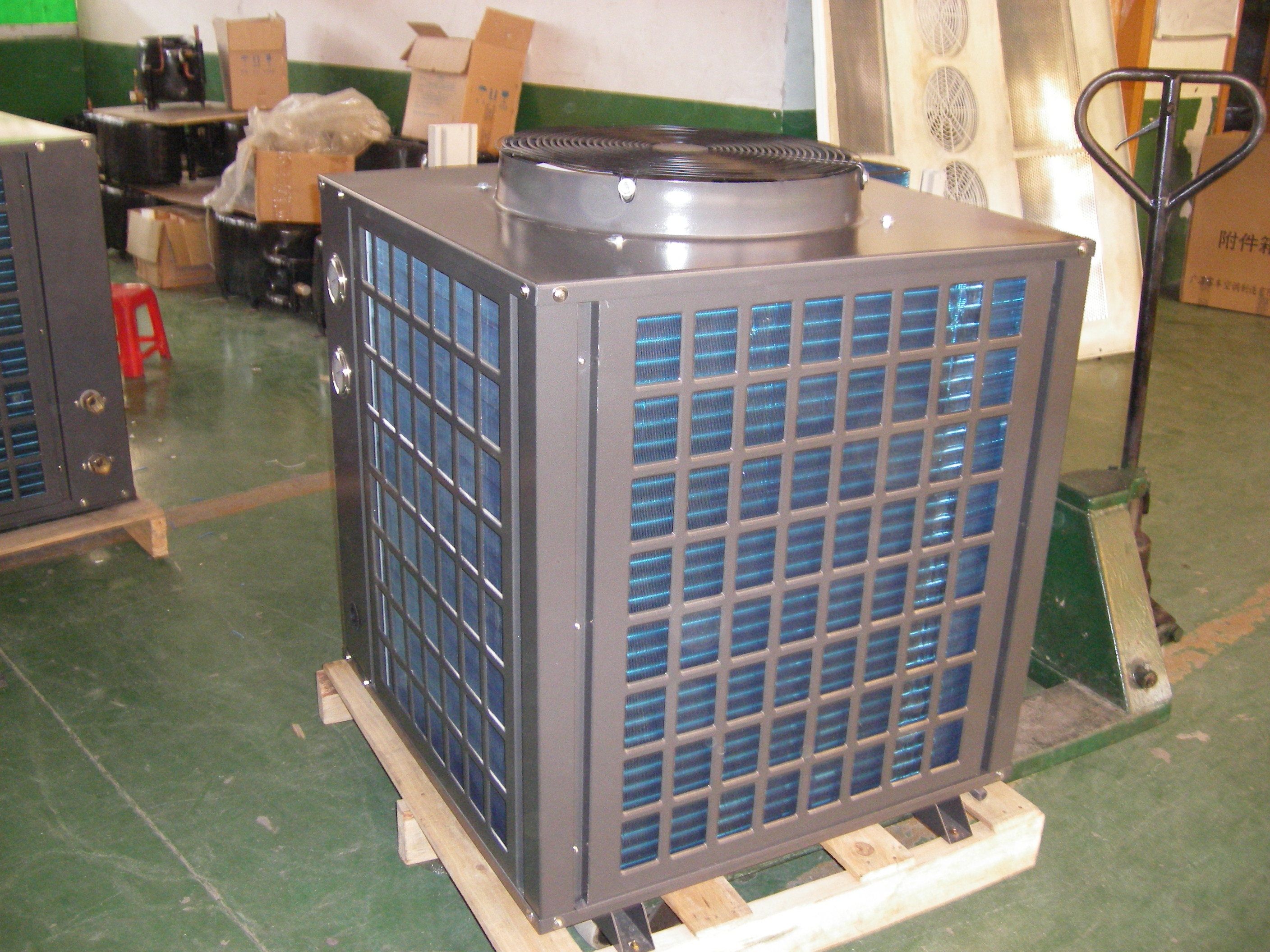 空气能热泵机组的热效率一般为300%-500%,以温升40℃计算,生产一吨热水约耗电9-15度。而普通电加热方式需要耗电52度。